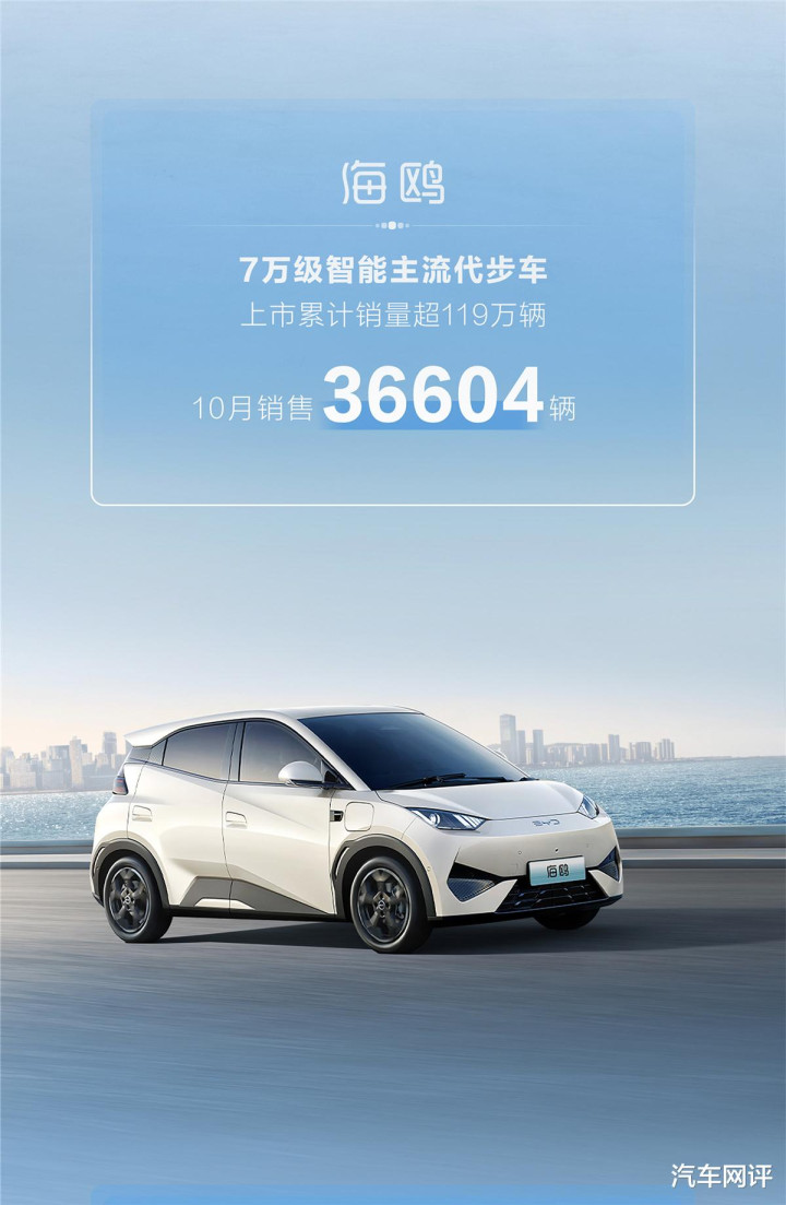 对于霸榜销冠的比亚迪来说,每个月火爆的销量数据早已是见怪不怪,不过偶尔也是能发现一些值得关注的亮点。比如比亚迪海鸥,在过去的10月份,它不仅创造36604辆的单月销量,并且收获了自上市以来超119万辆的累计销量成绩,如此惊人的数据自然不可能没有人发现。这只小巧的“海鸥”不仅为自己赢得了市场,更重要的是,它仿佛一剂强心针,激活了整个A00级纯电动车市场,让许多人重新认识到,小车也能做成大生意。