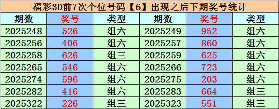 在最近个位奖号中,号码6前7次开出之后,下期分别落号:2、0、5、3、3、4、1,其中奖号奇偶比为4:3,大小比为1:6,012路比为3:2:2。