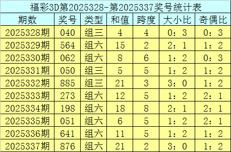 上期回顾:福利彩票3D第2025337期奖号为876。