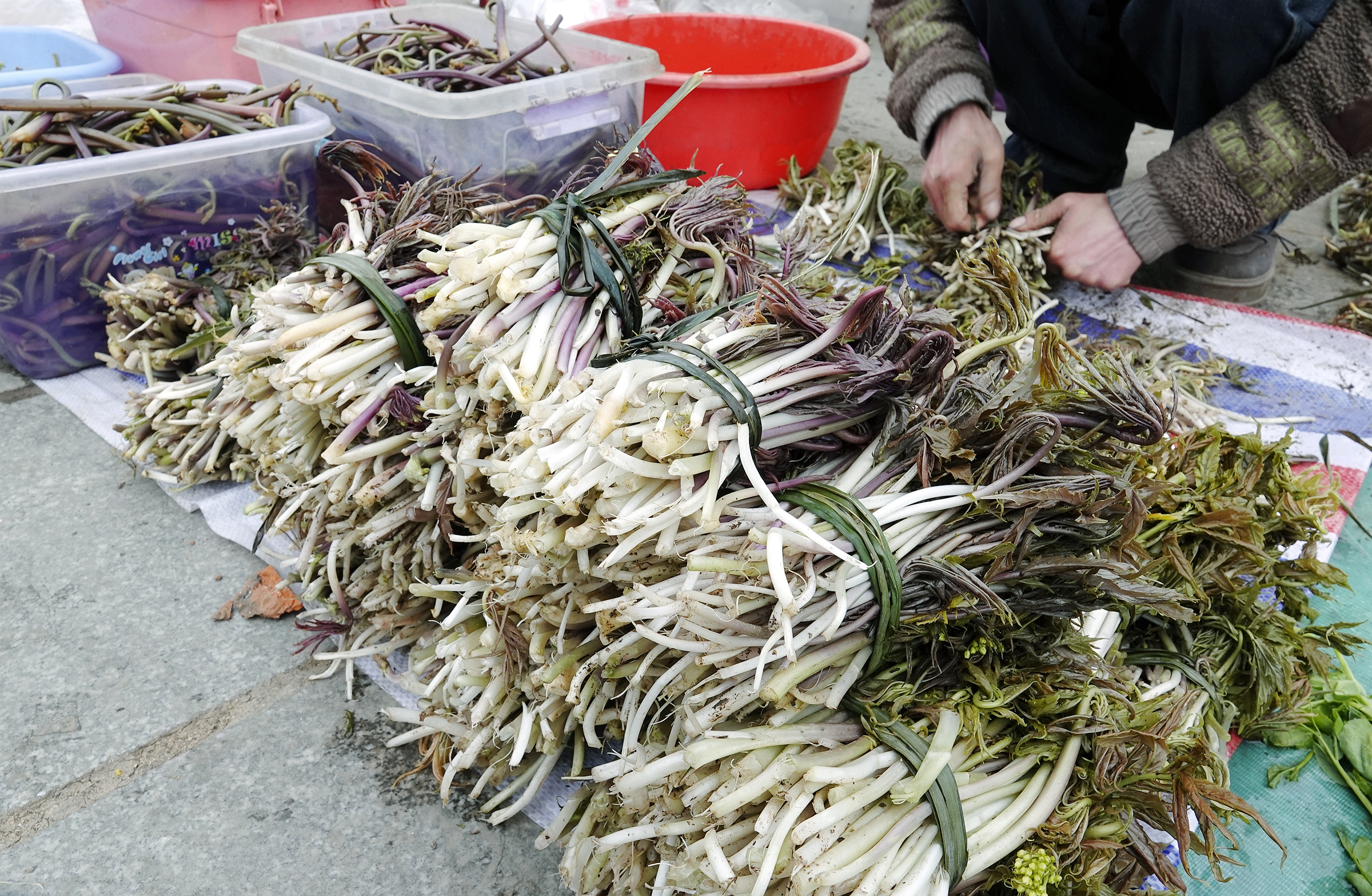 4月1日,记者从绵阳平武县获悉,随着气温回升,高山野菜已全面上市。在当地潮汐市场的山野集市上,刺龙苞、鹿耳韭、山根菜、水蕨子、广东苔等二十余种山野菜整齐摆开,各地游客慕名而来。逛集市、买野菜、购山货,深山里的春日味道正通过线上线下走向更广阔的天地。据统计,今年野菜上市以来,山野集市日均销售野菜约1500斤,日销售额超2万元。