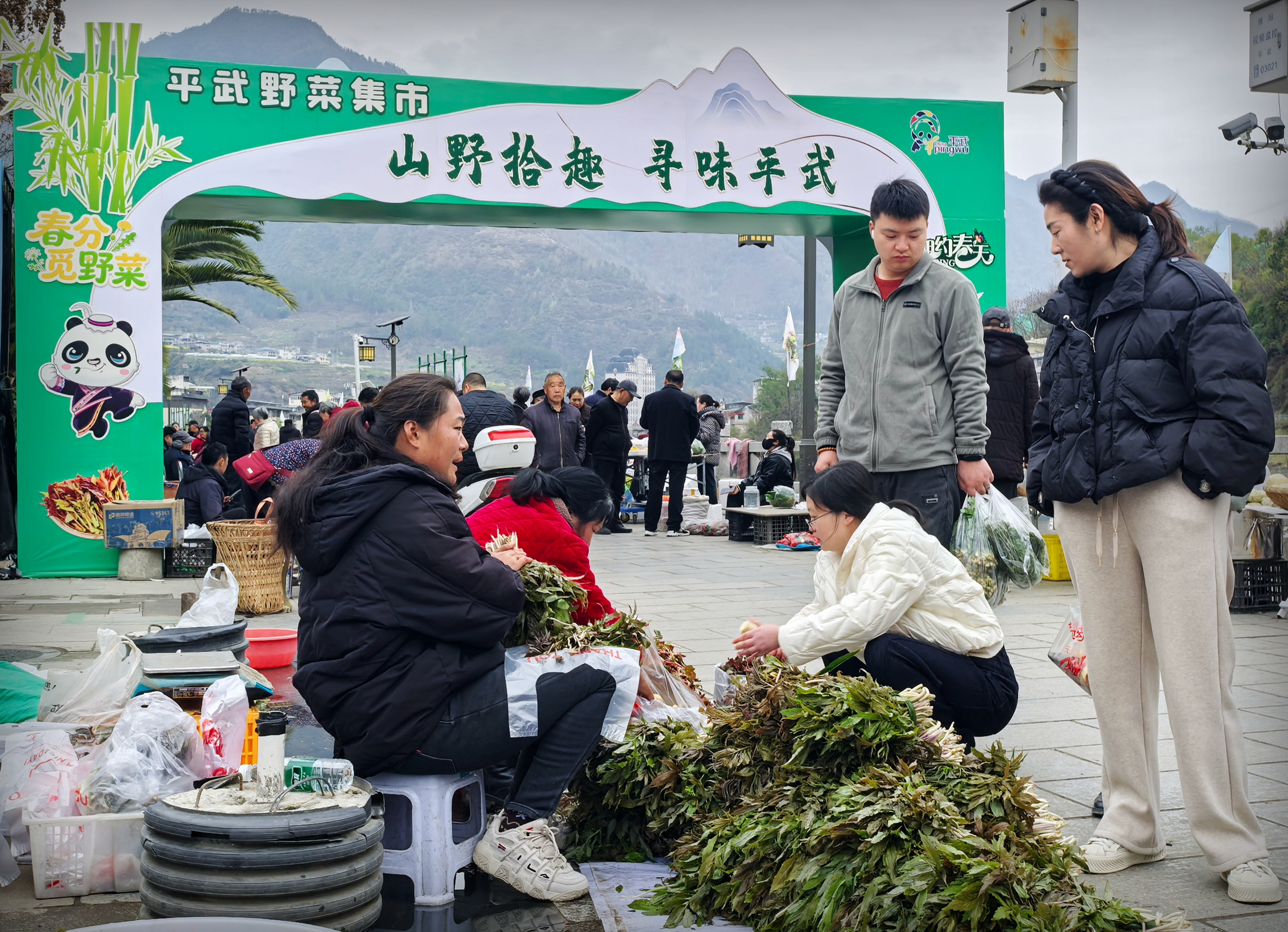 “买野菜,新鲜的野菜!纯天然无污染的哦!”商贩们的吆喝声在集市中格外洪亮。摊位前,询价声、称重声、手机直播间的解说词交织成一曲春日交响曲。来自绵阳的游客王先生已经是第三年来赶集,“每年这个时候都要来,逛集市、买山货、吃农家菜,已经成为我们家的春日仪式感。”